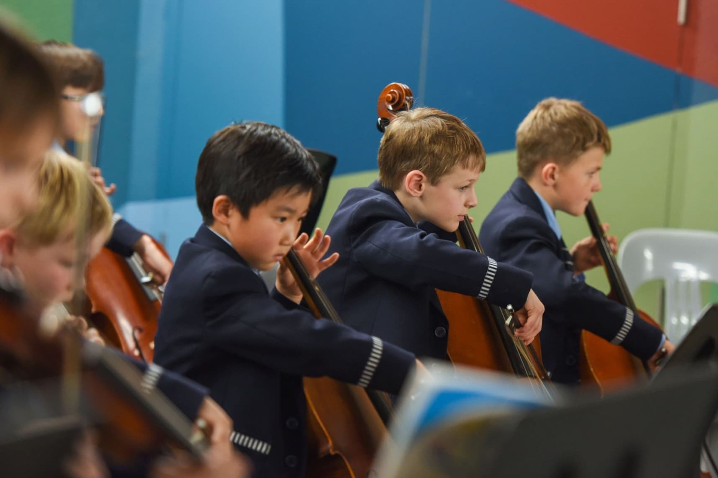 Kindergarten and Year 1 experience music through the use of tuned and un-tuned percussion instruments. Each Year 2 student learns to play either the violin or cello. Each week, students receive instruction in small group (sectional) and large group (tutti) lessons and perform as large string orchestras. They experience works by important string composers from different historical periods.